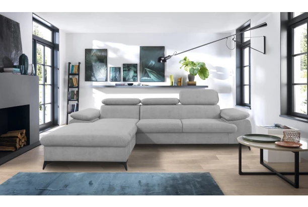 Moderná rohová sedačka Scala poskytuje komfort bez kompromisu v akomkoľvek veľkom priestore obývačky. Okrem ideálnych rozmerov ponúka komfortne ladené sedenie doplnené o chrbtové opierky, pri ktorých si môžete nastavovať sklon a prispôsobiť si tak pohodlie podľa seba. V prípade relaxácie využijete priestranný otoman, ktorý pri sedačke vytvára ľavý roh. Očalúnená látkou s príjemne mäkkou štruktúrou v odtieni strieborná svetlo šedá. Sedacia súprava je tiež vybavená úložným priestorom – ľahko prístupný z prednej strany otomanu. Čierne kovové nohy poskytujú stabilitu a vďaka ich správnej výške je možné pod sedačkou použiť aj robotický vysávač. Táto nadčasová sedačka je jednoducho prispôsobená štandardom dnešnej doby.