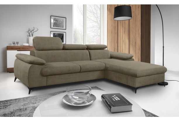 Moderná rohová sedačka Scala poskytuje komfort bez kompromisu v akomkoľvek veľkom priestore obývačky. Okrem ideálnych rozmerov ponúka komfortne ladené sedenie doplnené o chrbtové opierky, pri ktorých si môžete nastavovať sklon a prispôsobiť si tak pohodlie podľa seba. V prípade relaxácie využijete priestranný otoman, ktorý pri sedačke vytvára pravý roh. Očalúnená látkou s príjemne mäkkou štruktúrou v odtieni orieškovo hnedá. Sedacia súprava je tiež vybavená úložným priestorom – ľahko prístupný z prednej strany otomanu. Čierne kovové nohy poskytujú stabilitu a vďaka ich správnej výške je možné pod sedačkou použiť aj robotický vysávač. Táto nadčasová sedačka je jednoducho prispôsobená štandardom dnešnej doby.
