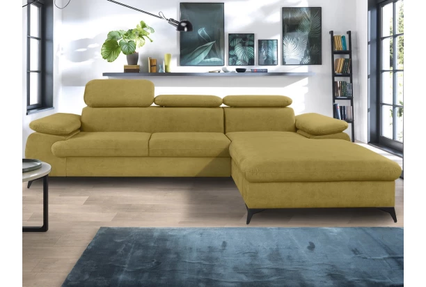 Rohová sedacia súprava Scala, žltá látka, pravý roh