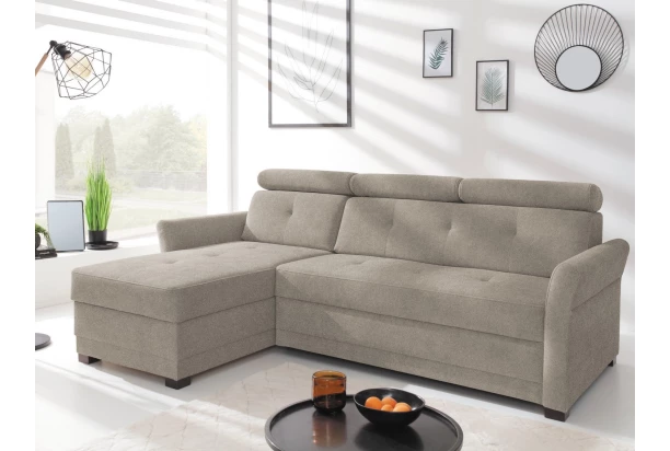 Rohová sedacia súprava Harris je ideálnou voľbou do malého priestoru a univerzálnym štýlom sa hodí do každej obývačky. Potiahnutá látkou vo farbe hnedo-béžová taupe, pohodlné vypolstrovanie dopĺňajú polohovateľné opierky pre individuálne nastavenie komfortu. S bočným otomanom tvorí sedačka ľavý roh. Úložný priestor a rozklad na lôžko plní praktickú rolu, lôžko môžete tiež použiť na trvalé spanie.