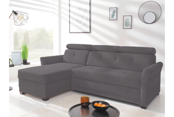 Rohová sedacia súprava Harris je ideálnou voľbou do malého priestoru a univerzálnym štýlom pasuje do každej obývačky. Potiahnutá tkaninou vo farbe tmavo šedá, pohodlné vypolstrovanie dopĺňajú polohovateľné opierky pre individuálne nastavenie komfortu. S bočným otomanom tvorí sedačka ľavý roh. Úložný priestor a rozklad na lôžko plní praktickú úlohu, lôžko môžete využiť aj na trvalé spanie.