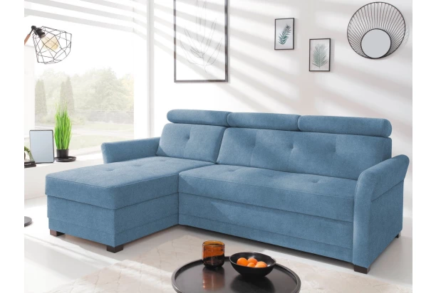 Rohová sedacia súprava Harris je ideálnou voľbou do malého priestoru a univerzálnym štýlom pasuje do každej obývačky. Potiahnutá látka komfort vo farbe svetlo modrá, pohodlné vypolstrovanie dopĺňajú polohovateľné opierky pre individuálne nastavenie. S bočným otomanom tvorí sedačka ľavý roh. Úložný priestor a rozklad na lôžko plní praktickú rolu, lôžko môžete tiež použiť pre trvalé spanie.
