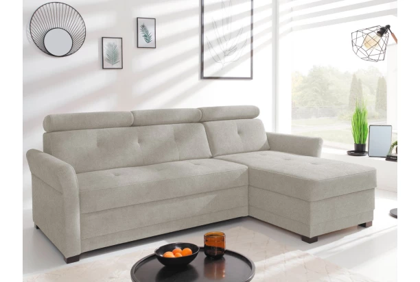 Rohová sedacia súprava Harris je ideálnou voľbou do malého priestoru a univerzálnym štýlom pasuje do každej obývačky. Potiahnutá príjemnou látkou vo farbe béžová, pohodlné vypolstrovanie dopĺňajú polohovateľné opierky na individuálne nastavenie komfortu. S bočným otomanom tvorí sedačka pravý roh. Úložný priestor a rozklad na lôžko plní praktickú rolu, lôžko môžete tiež použiť pre trvalé spanie.