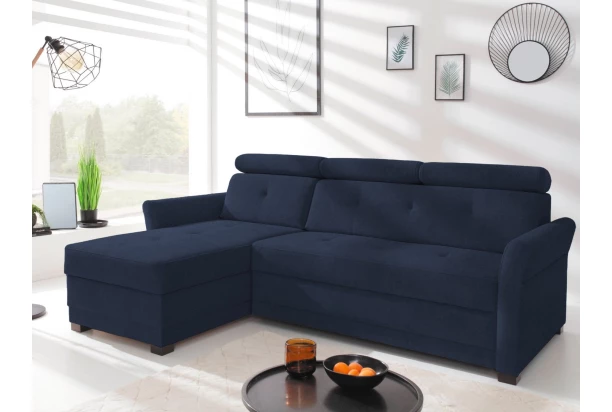 Rohová sedacia súprava Harris je ideálnou voľbou do malého priestoru a univerzálnym štýlom pasuje do každej obývačky. Potiahnutá príjemnou látkou vo farbe námornícka tmavo modrá, pohodlné vypolstrovanie dopĺňajú polohovateľné opierky na individuálne nastavenie komfortu. S bočným otomanom tvorí sedačka ľavý roh. Úložný priestor a rozklad na lôžko plní praktickú rolu, lôžko môžete tiež použiť pre trvalé spanie.