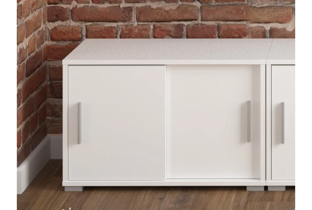 Nízka skrinka z kolekcie Switch – moderný biely nábytok v maximálne praktickom a univerzálnom dizajne môžete využiť v takmer akejkoľvek miestnosti. Jednotlivé diely tejto nábytkovej kolekcie je možné medzi sebou ľubovoľne kombinovať, skladať vedľa seba, skladať na seba a vytvárať tak rôzne veľké zostavy podľa Vašich potrieb a priestorových možností. Tento nábytok skvele poslúži, či už sa rozhodnete zariadiť obývaciu izbu, jedáleň, pracovňu, detskú izbu, komoru, šatňu alebo napríklad predsieň. Pre jednoducho moderný a praktický domov.