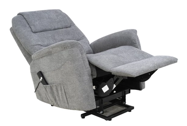 Kreslo s elektrickým polohovaním, ponúka príjemný mäkký komfort vďaka priestrannému sedáku a anatomicky tvarovanému operadlu. Obľúbite si aj elektrické polohovanie pomocou ovládača, ktorý ľahko uschováte do bočného vrecka v podrúčke. Staršie osoby ocenia aj funkciu na podporu vstávania. Očalúnené látkou v odtieni holubia šedá. Kreslo vyniká aj extra nosnosťou.