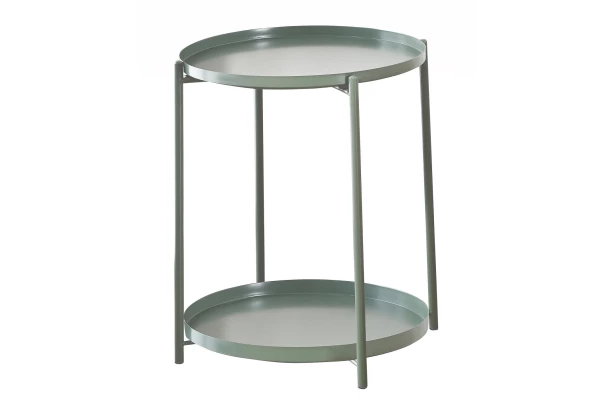 Praktický pastelovo zelený odkladací stolík je vyrobený z kovu a dobre poslúži vedľa sedačky alebo kdekoľvek v rohu miestnosti na umiestnenie lampičky, časopisov, dekorácií alebo aj ako stolík na kvety.