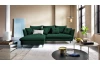 Rohová sedacia súprava Glam, tmavo zelená látka, ľavý roh