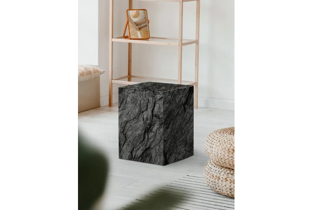 Štýlový taburet s potlačeným motívom šedého mramoru zaujme na pohľad. Vďaka ľahkej konštrukcii z vystuženého kartónu je možné ľahko premiestniť alebo kedykoľvek jednoducho zložiť a uschovať.