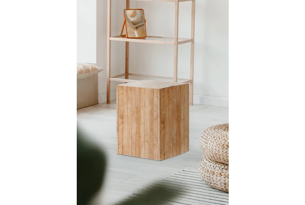 Štýlový taburet s potlačeným motívom drevených dosiek zaujme na pohľad. Vďaka ľahkej konštrukcii z vystuženého kartónu je možné ľahko premiestniť alebo kedykoľvek jednoducho zložiť a uschovať.