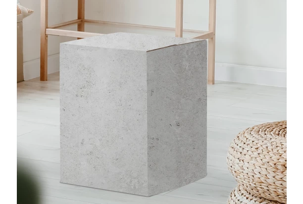 Štýlový taburet s potlačeným motívom šedého betónu zaujme na pohľad. Vďaka ľahkej konštrukcii z vystuženého kartónu je možné ľahko premiestniť alebo kedykoľvek jednoducho zložiť a uschovať.