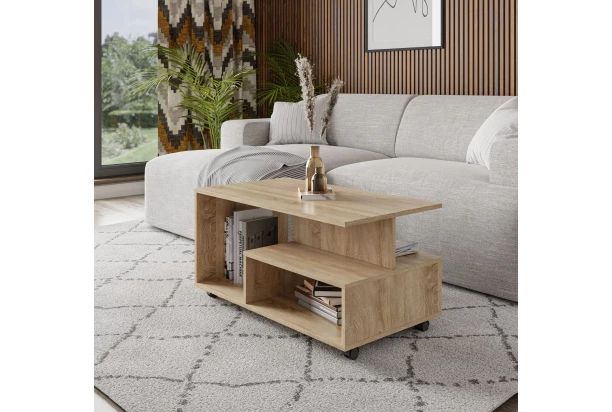 Konferenčný stolík na kolieskach je navrhnutý tak, aby rôzne veľké priehradky mohli poskytnúť priestor na odkladanie rôzne veľkých vecí, ktoré potom budete mať vo svojej obývačke ľahko vždy po ruke. Vyrobený v dekore dub sonoma.