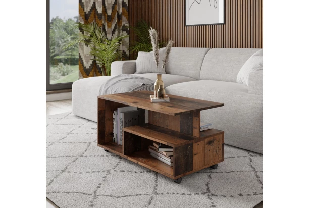 Konferenčný stolík na kolieskach je navrhnutý tak, aby rôzne veľké priehradky mohli poskytnúť priestor na odkladanie rôzne veľkých vecí, ktoré potom budete mať vo svojej obývačke ľahko vždy po ruke. Vyrobený v zaujímavej vintage optike drevených lát.