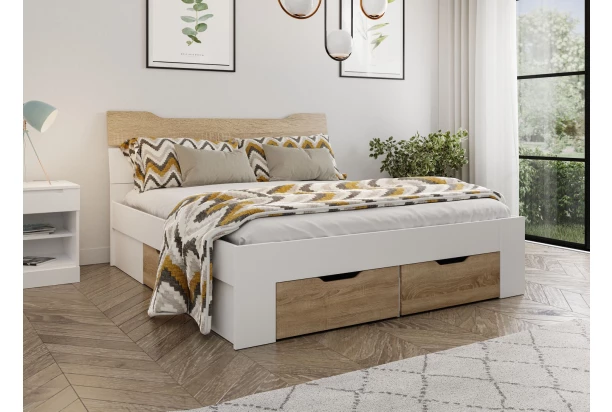 Posteľ s úložnými zásuvkami Asko 180x200 cm, biela/dub sonoma