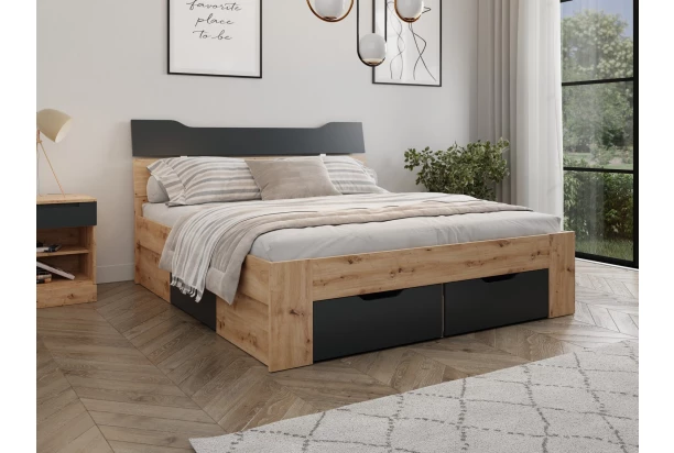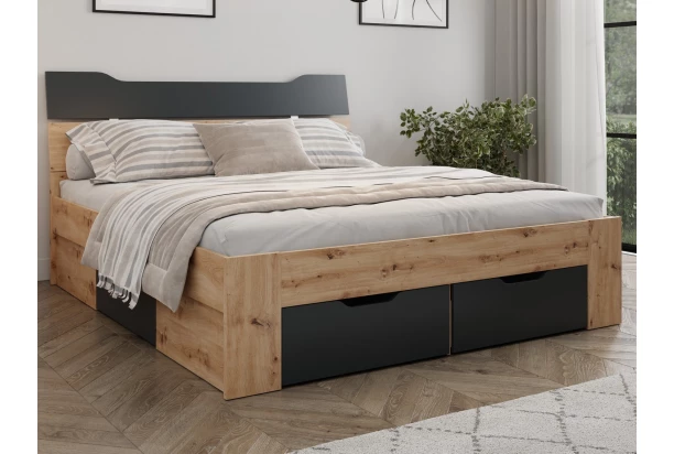 Posteľ s úložnými zásuvkami Asko 180x200 cm, dub artisan/antracit