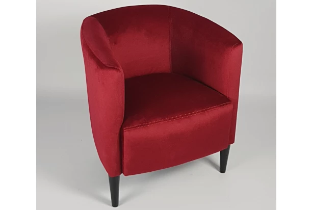 Elegantné zaoblené kreslo na čiernych drevených nôžkach pasuje veľkostne takmer do každého priestoru. Toto univerzálne kresielko je očalúnené látkou v zamatovej optike vo farbe červená.