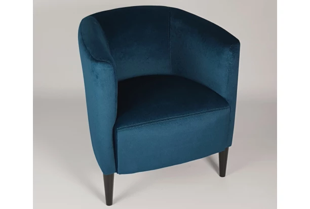 Elegantné zaoblené kreslo na čiernych drevených nôžkach pasuje veľkostne takmer do každého priestoru. Toto univerzálne kresielko je očalúnené látkou v zamatovej optike vo farbe modrá.
