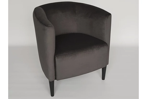 Elegantné zaoblené kreslo na čiernych drevených nožičkách sa hodí veľkostne takmer do každého priestoru. Toto univerzálne kresielko je očalúnené látkou v zamatovej optike vo farbe antracitová šedá.