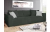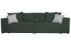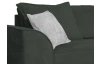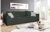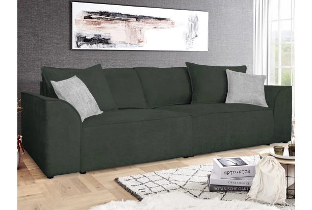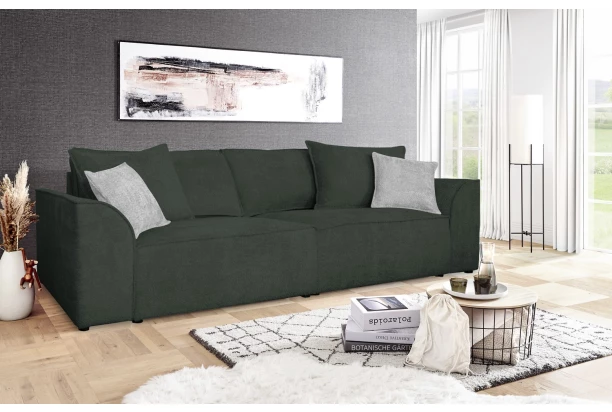 Veľká komfortná pohovka s rôzne veľkými vankúšmi vytvorí príjemné relaxačné prostredie vo vašej obývačke. Očalúnená mäkkučkou látkou s dlhším štruktúrovaným vlasom v odtieni tmavo zelená, ktorá doplní útulnú atmosféru bytu. Po odobratí vankúšov môžete získať dostatočný priestor na príležitostné prespanie napríklad vašej návštevy. Pohovku môžete umiestniť nielen priamo k stene, ale skvele vynikne aj v priestore obývačky. Doplnená malými vankúšmi vo farbe svetlo šedá.