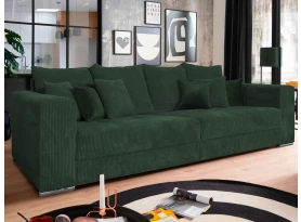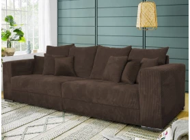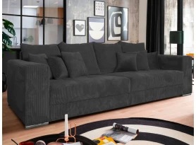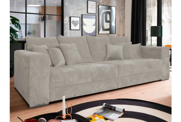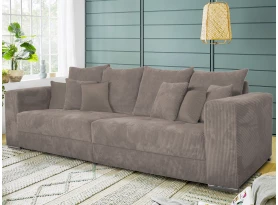 Široká pohovka s veľkými vankúšmi ponúka ideálny priestor pre skvelú domácu pohodu. Na útulnosti pridáva aj mäkkučká poťahová látka s prúžkovanou štruktúrou v odtieni krémová. Priestranná pohovka tak vytvorí útulný stredobod vašej obývačky. Môže byť umiestnená k stene alebo aj doprostred miestnosti, kde vynikne. Po odobratí vankúšov môže ponúknuť aj dostatočný priestor na prespanie návštevy. Táto veľká pohovka v modernom nadčasovom štýle sa hodí ako do bytu, tak aj do rodinného domu.