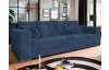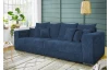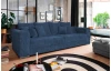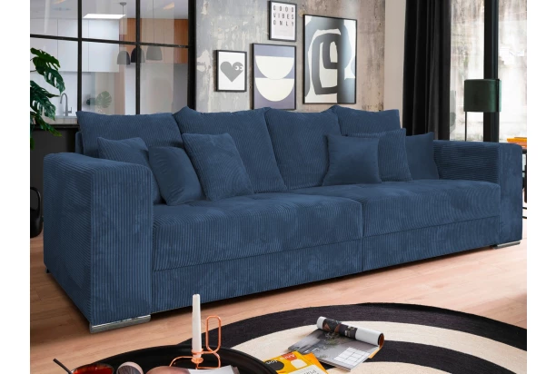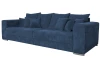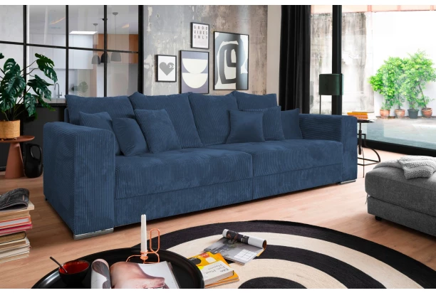 Široká pohovka s veľkými vankúšmi ,ponúka ideálny priestor pre skvelú domácu pohodu. Na útulnosti pridáva aj mäkkučká poťahová látka s prúžkovanou štruktúrou v odtieni modrá. Priestranná pohovka ,tak vytvorí útulný stredobod vašej obývačky. Môže byť umiestnená k stene alebo aj doprostred miestnosti, kde vynikne. Po odobratí vankúšov, môže ponúknuť aj dostatočný priestor na prespanie návštevy. Táto veľká pohovka v modernom nadčasovom štýle sa hodí ako do bytu, tak aj do rodinného domu.