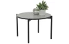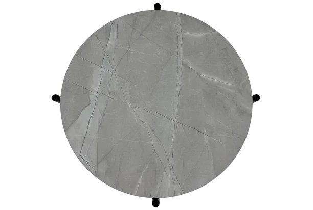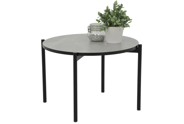 Okrúhly konferenčný stolík má stabilnú podnož z čierneho kovu a hornú plochu v imitácii šedý mramor. Výborne sa hodí do modernej obývačky a vďaka priemeru 60 cm pasuje aj do menšieho priestoru.