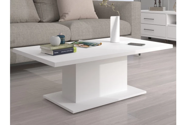 Biely konferenčný stolík na stabilnej stredovej podnoži pôsobí v modernej obývačke vzdušne. Obdĺžna plocha má ideálnu veľkosť 110×60 cm, stolík je vyrobený v univerzálnej bielej farbe.