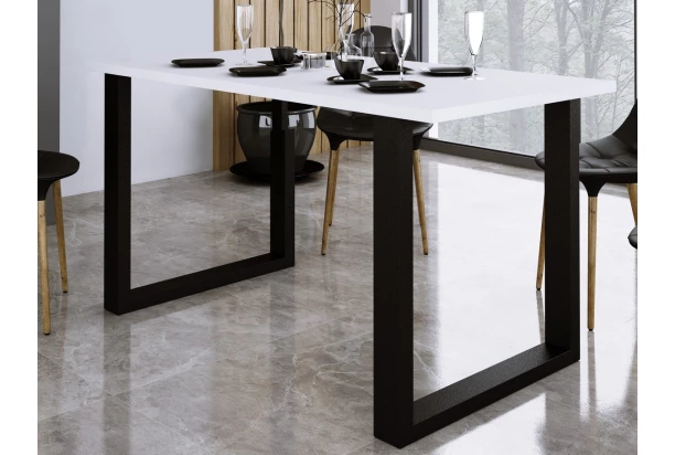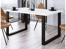 Biely obdĺžníkový jedálenský stôl o veľkosti 138×67 cm vynikne v modernej jedálni. Pevnosť stola zaisťuje kovová podnož v čierno lakovanom prevedení.