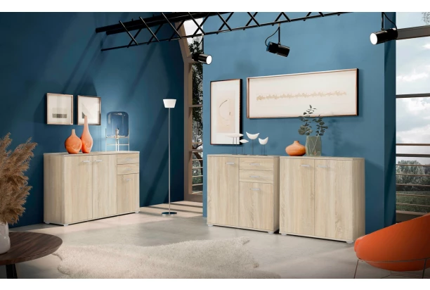 Komoda dvojdverová o šírke 71 cm v dekore dub sonoma. Jednoduchým a úplne univerzálnym štýlom sa hodí do akejkoľvek miestnosti.