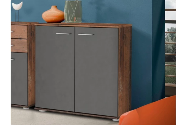 Komoda dvojdverová o šírke 71 cm vo vintage optike drevených lát. Jednoduchým a úplne univerzálnym štýlom sa hodí do akejkoľvek miestnosti.