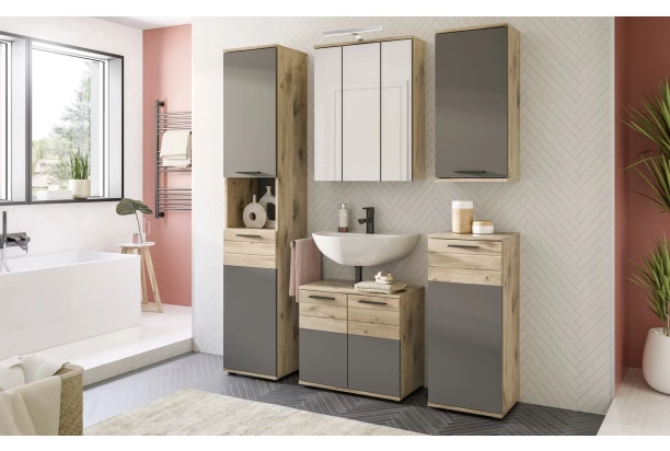 Kúpeľňová skrinka pod umývadlo Mason, dub/šedá