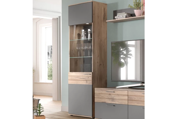 Vysoká vitrína Mason, dub/šedá