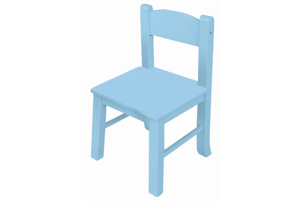Detská stolička v zmenšenej veľkosti. Detská stolička v modrej farbe vyzerá roztomilo, je stabilná a skvele doplní priestor detskej izby.