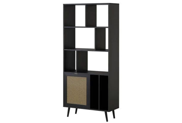 Vysoký regál z kolekcie Vienna – elegantný nábytok v čiernom prevedení v kombinácii s imitáciou prírodného viedenského výpletu zaujme na pohľad a skvele doplní váš štýlový interiér. Masívne čierne nôžky dotvárajú elegantný vzhľad a zároveň umožňujú jednoduchú údržbu podlahy. Objavte tak kúzlo nábytku s tradičným nádychom, ktorý pôsobí útulne, veľmi štýlovo a zároveň zostáva praktický. Z jednolivých elementov tak môžete krásne zariadiť priestor celého bytu. Tento nábytok sa dobre kombinuje aj s prírodnými doplnkami, navyše úžasne doplní aj moderný interiér, kde vynikne a stane sa zaujímavým vizuálnym prvkom.