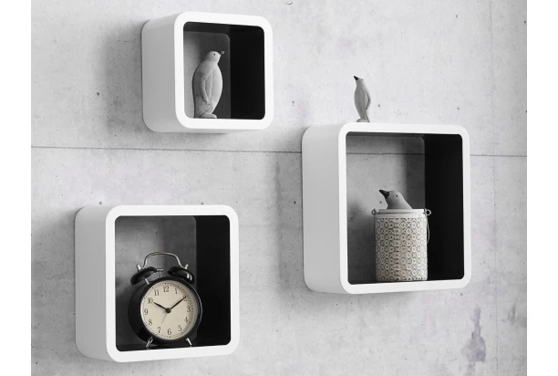 Súprava nástenných regálov (3 ks) Cubo, biela/čierna lesk