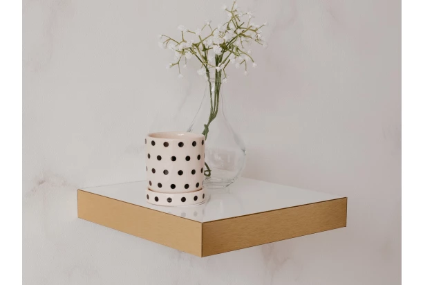 Polica na stenu Shelvy 23,5 cm, biela lesk/zlatá