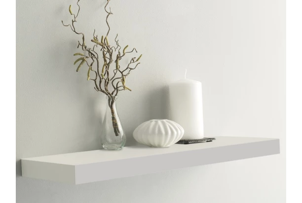 Polica na stenu so šírkou 60 cm vo farbe biela mat – jednoduchý univerzálny dizajn pasuje do každého interiéru aj miestnosti. Kovové konzoly na zavesenie sú prakticky ukryté zo zadnej strany.
