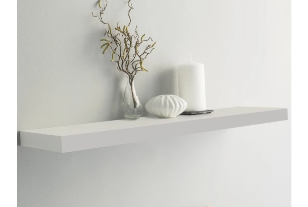 Polica na stenu so šírkou 80 cm vo farbe biela mat – jednoduchý univerzálny dizajn pasuje do každého interiéru aj miestnosti. Kovové konzoly na zavesenie sú prakticky ukryté zo zadnej strany.