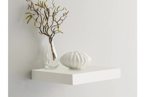 Polica na stenu o šírke 23,5 cm vo farbe biela mat – jednoduchý univerzálny design pasuje do každého interiéru aj miestnosti. Kovové konzoly na zavesenie sú prakticky ukryté zo zadnej strany.