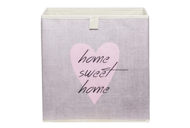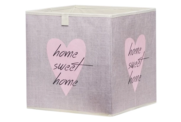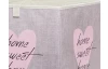 Úložný látkový box s motívom ružového srdca poslúži ako praktická súčasť regálu alebo vnútorného vybavenia skriniek, prípadne ho môžete umiestniť samostatne. Jeho konštrukciu je možné kedykoľvek ľahko zložiť a uschovať.