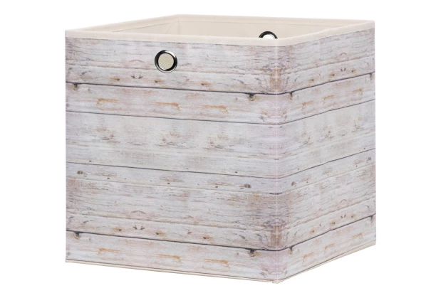 Úložný látkový box s potlačenými motívmi svetlých drevených dosiek poslúži ako praktická súčasť regálu alebo ako vnútornéh vybavenie skriniek, prípadne ho môžete umiestniť samostatne. Jeho konštrukciu je možné kedykoľvek ľahko zložiť a uschovať.
