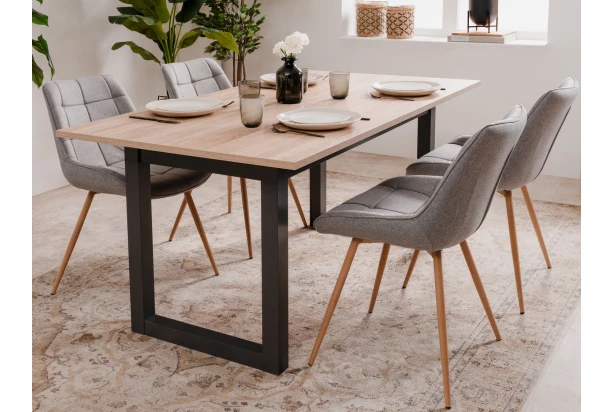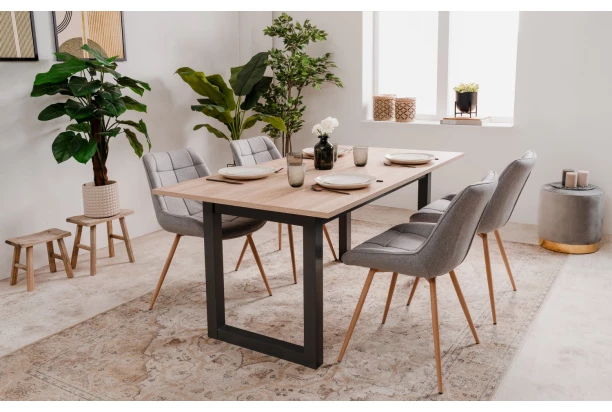 Jedálenský stôl s rozkladacou funkciou z kolekcie Denver – nábytok v mestskom industriálnom štýle ,pôsobí veľmi moderne a dáva Vám možnosť vytvárať dizajnové interiéry v mladistvom duchu. Svetlý drevodekor dub sonoma dopĺňajú antracitovo šedé línie a široké bočné rámy, vďaka ktorým je nábytok nezameniteľný.