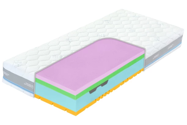 Prepracovaný ortopedický matrac s pamäťovou a gélovou odľahčujúcou penou s veľkosťou 90×200 cm. S ochranou chrbtice v jadre z hybridnej peny, dokonalou pružnosťou a pohodlím. Profilácia v tvare kociek bola vyvinutá špeciálne pre zdravotné matrace a optimalizuje rozloženie tlaku a pomáha tak zabrániť preležaniu.