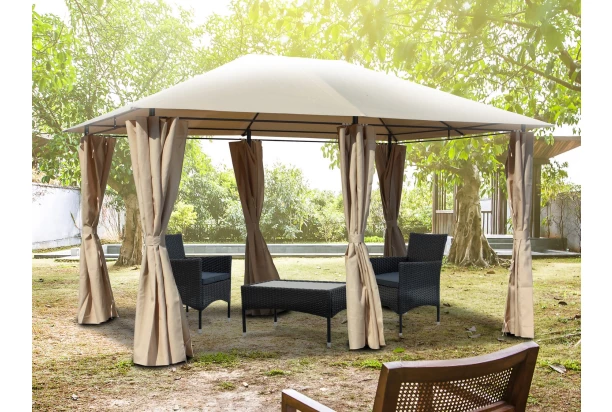 Pod extra veľký záhradný altánok s rozmerom 400×300 cm môžete umiestniť celý záhradný nábytok. Priestranný béžový altánok so stabilnou kovovou konštrukciou je vybavený praktickými bočnými závesmi, ktoré Vás ochránia pred slnečnými lúčmi.