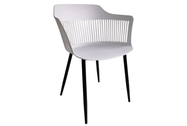 Jedálenská stolička z kovu a bieleho polypropylénu má zaujímavý zaoblený dizajn a zároveň je odolná – môže tak byť umiestnená nielen v interiéri, ale aj vo vonkajšom prostredí pri jedálenskom stole na Vašej záhrade, terase či balkóne.