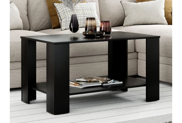 Obdĺžnikovy konferenčný stolík v klasickom univerzálnom štýle má zvýšenú konštrukciu s výškou 54 cm na praktické využitie. Vyrobený v prevedení čierny.