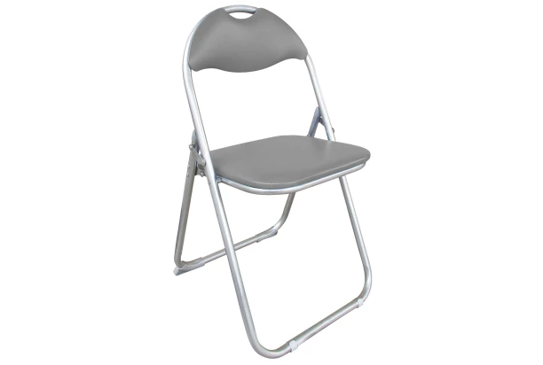Praktická kovová stolička má skladaciu konštrukciu a univerzálne využitie v akejkoľvek miestnosti. Ľahko ju môžete aj prenášať. Sedacia a oporná časť potiahnutá ekokožou vo farbe šedá.