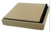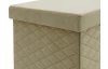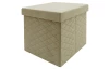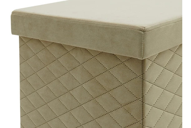 Praktický taburet s úložným priestorom má jednoducho skladaciu konštrukciu. Potiahnutý látkou so zamatovým efektom vo farbe béžová a doplnený okrasným kosoštvorcovým prešivom.