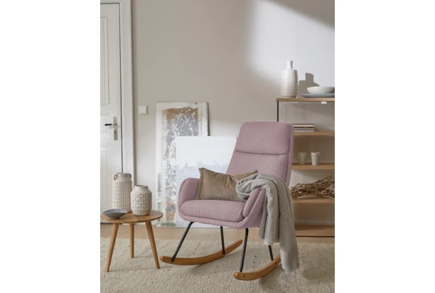 Obľúbené hojdacie kreslo pre chvíle domácej pohody – teraz v modernom štýle. Príjemne tvarovaný sedák očalúnený látkou vo farbe staroružová. Obľúbite si moderný design kresla a vďaka svojim rozmerom nájde svoje miesto v akejkoľvek veľkej miestnosti.