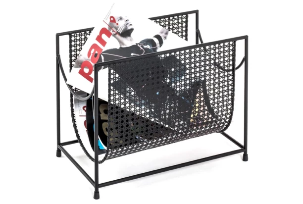 Kovový stojan na noviny v prevedení čierny lak má okrasnú plochu v imitácii viedenského výpletu. Pôsobí luxusne zaujme na pohľad. Novinový stojan poslúži aj na odkladanie Vašich obľúbených časopisov alebo knižiek. Môžete ho umiestniť vedľa sedačky, postele alebo kamkoľvek do rohu miestnosti.